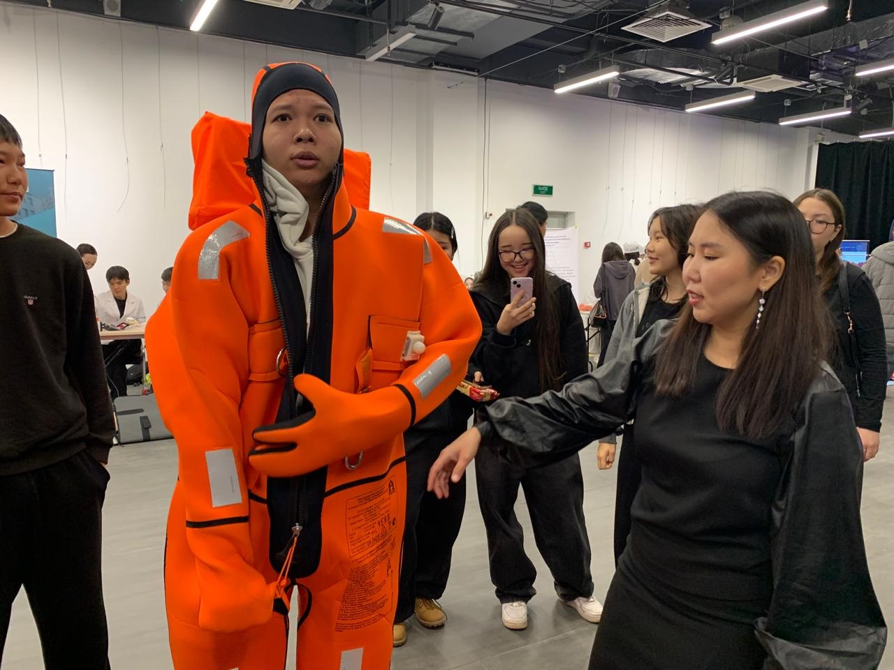 Большой ажиотаж был у стенда Жатайского техникума, который готовит специалистов для речного флота. Представитель Ленского объединенного речного пароходства Николай Марков демонстрировал спасательный гидрокостюм. Желающих примерить его было много, даже выстроилась целая очередь. А одевать его было довольно-таки сложно.