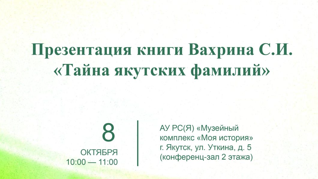Форум стартует 8 октября в Историческом парке в 10 утра с презентации книги краеведа Сергея Вахрина «Тайна якутских фамилий». Это фундаментальный труд объёмом почти в тысячу страниц, рассказывающий об истории освоения Севера и Дальнего Востока России казаками. Книга — результат совместного проекта якутского и камчатского отделений Русского географического общества.