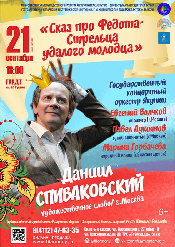 Актер театра, телевидения и кино Даниил Спиваковский выступает в качестве чтеца. Артист считает эту ироническую сказку Леонида Филатова очень современной, изложенной «настоящим русским языком», и намеревается «спеть, сыграть и похулиганить».