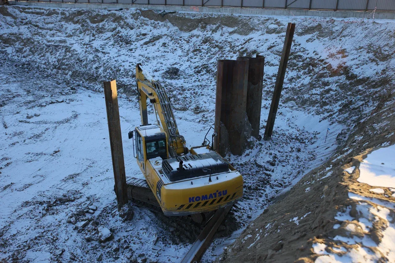 Работы ведутся одновременно с двух берегов. На правом берегу уже отсыпано 329 тысяч кубометров земляного полотна под автомобильный подход, устраиваются свайные основания сразу под несколькими опорами. На левом — продолжается сборка металлоконструкций и подготовка площадок под установку коффердамов.