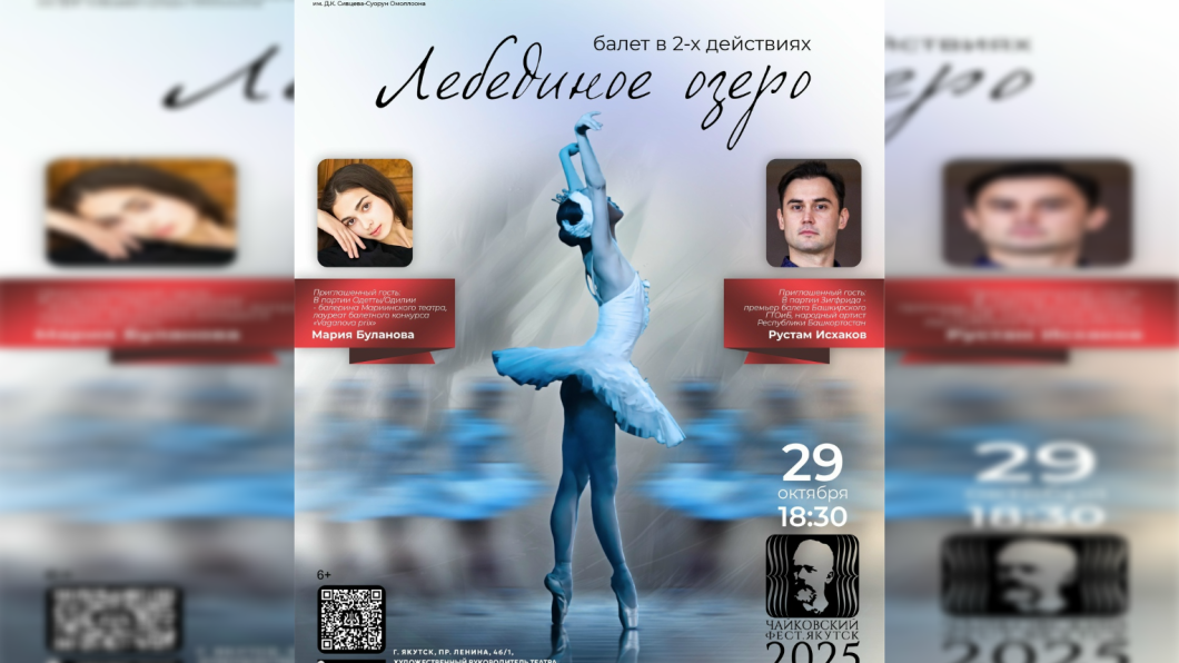 18.30 — балет «Лебединое озеро» (Мария Буланова, Рустам Исхаков).