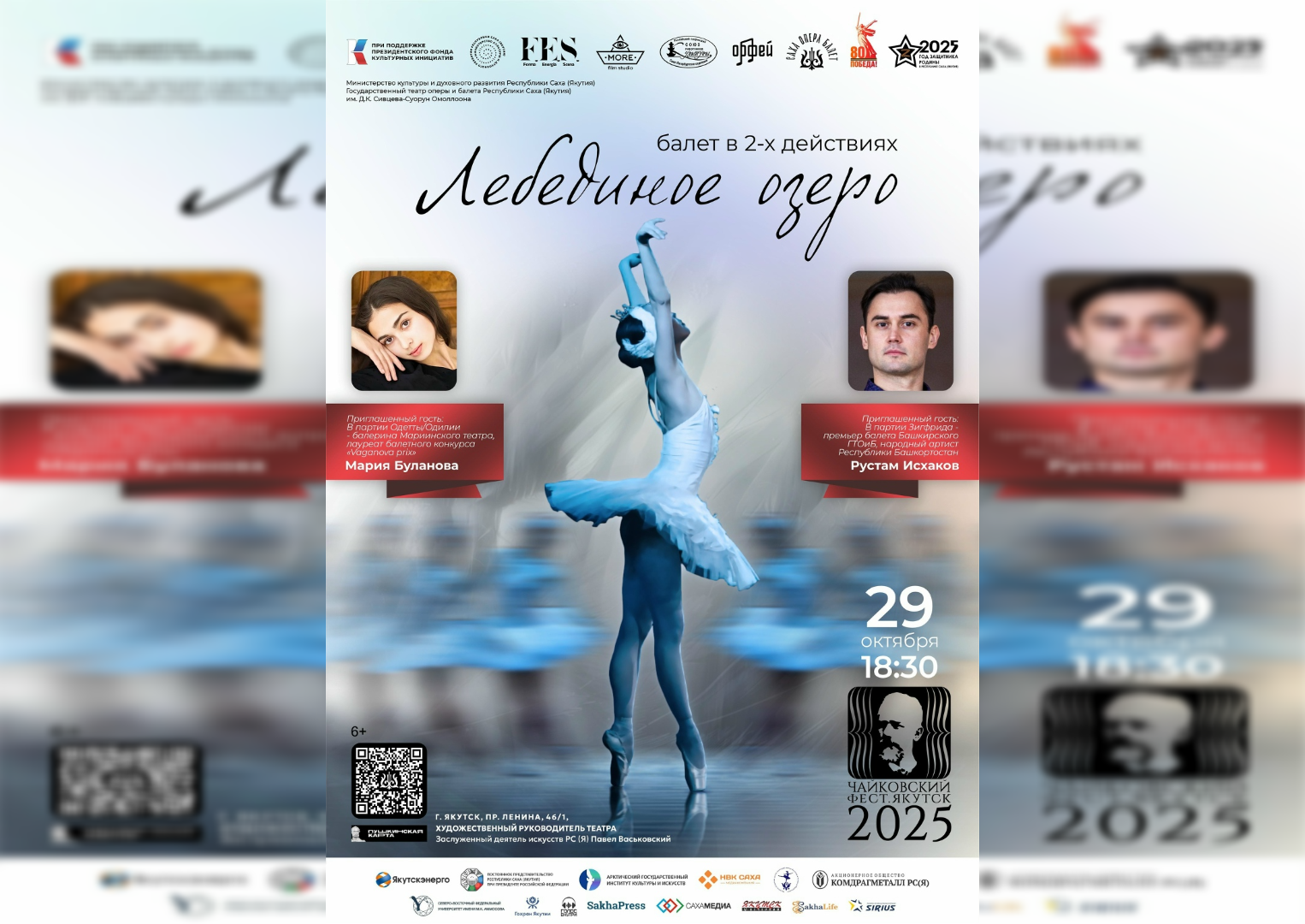 18.30 — балет «Лебединое озеро» (Мария Буланова, Рустам Исхаков).
