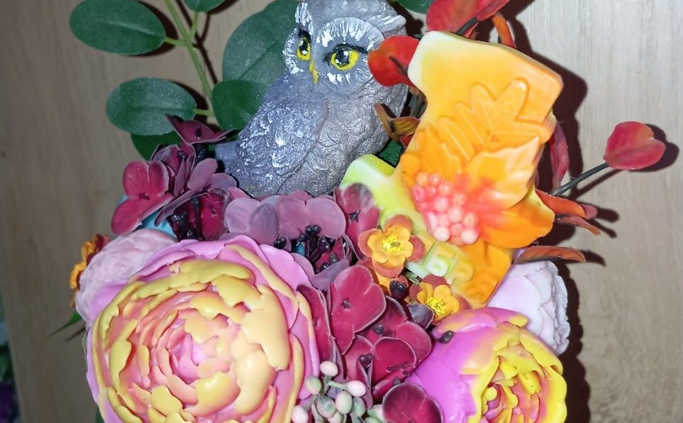 – Вообще мыловарение может открыть в вас и флориста, и художника. Например, когда варим мыло в виде букетов, надо подобрать сочетание цветов, декорировать зеленью. Если делаем различные фигурки птиц или животных, после застывания и выемки из формы нужно красиво раскрасить акценты, нарисовать личико животного, ведь это все делается вручную.